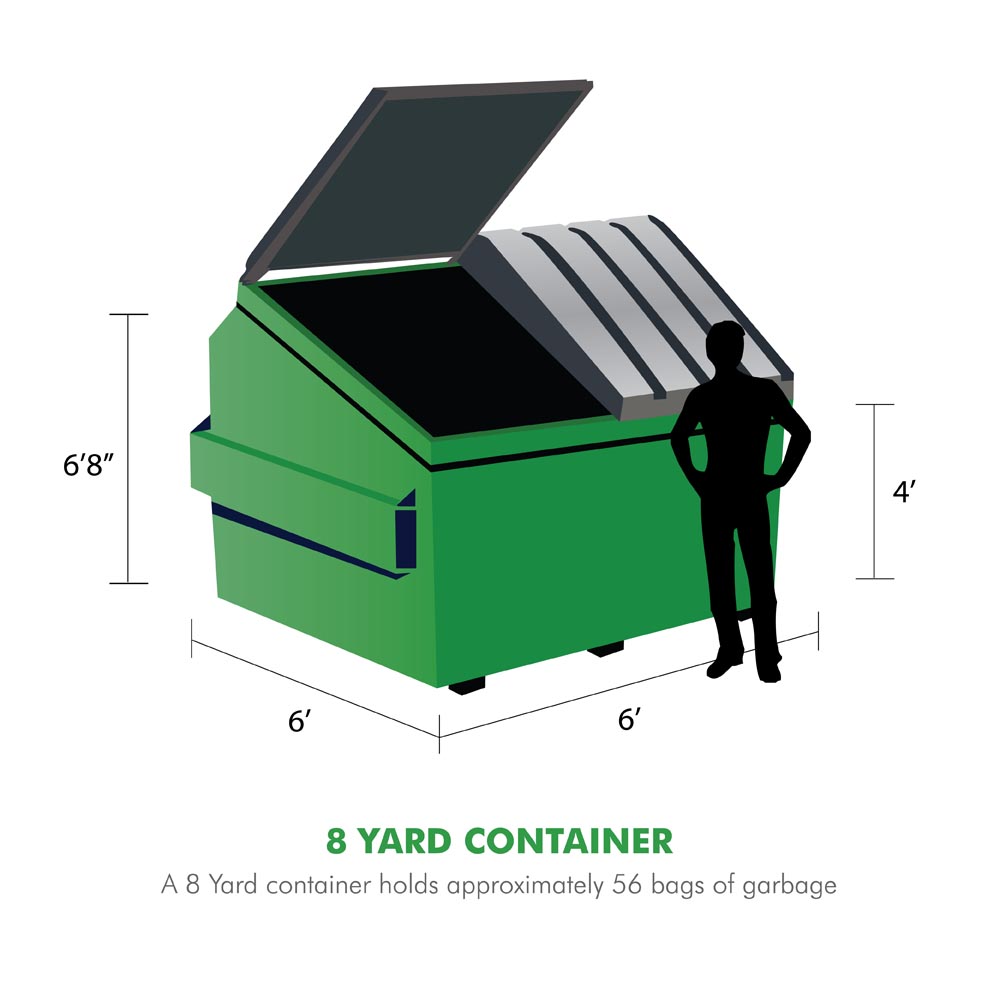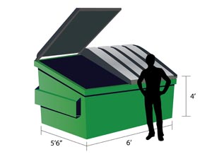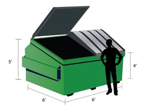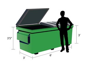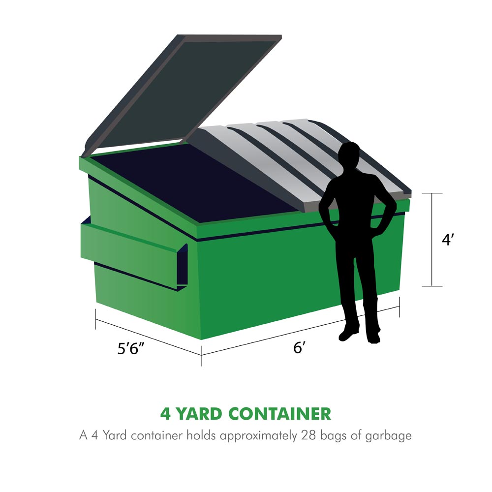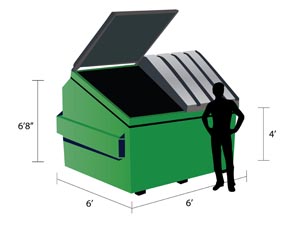 Sturdy steel containers that can be serviced multiple times per week depending on the frequency of trash generated. Closed steel containers aid in pest control.